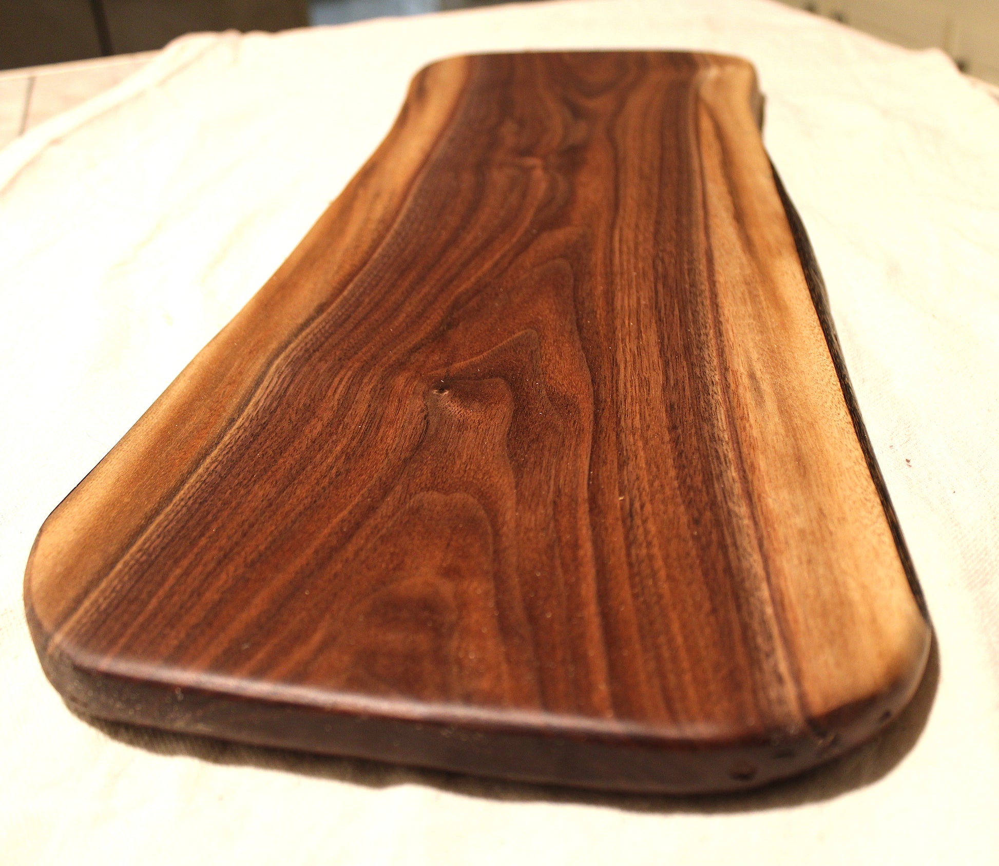 This board is cut from a single slab of walnut and finished to bring out the smooth grain and flowing lines. It’s designed for everyday hosting, serving, and display. This piece also contains subtle curl and figure that add to the character.